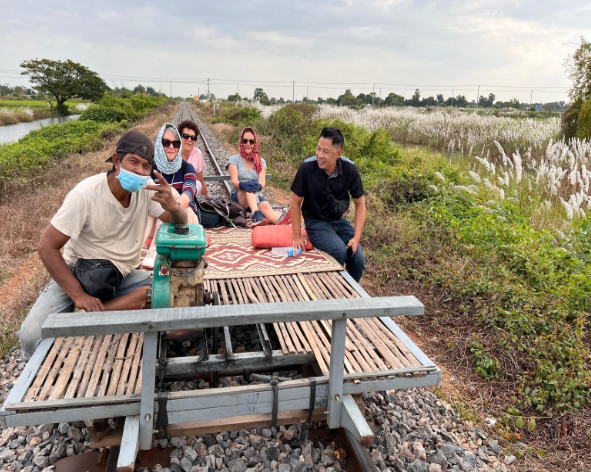 L’après-midi, expérience du train de Bambou et visite de la montagne de Phnom Sampov en attendant la sortie des millions des chauves-souris.
