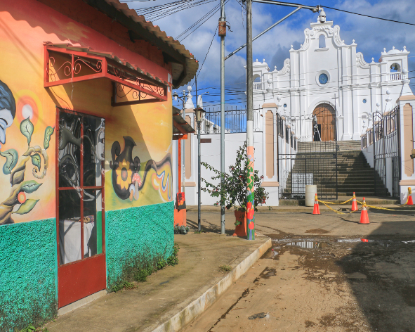 Installation dans le village de Concepción de Ataco, connu pour ses fresques murales, son ambiance artistique et ses cafés.