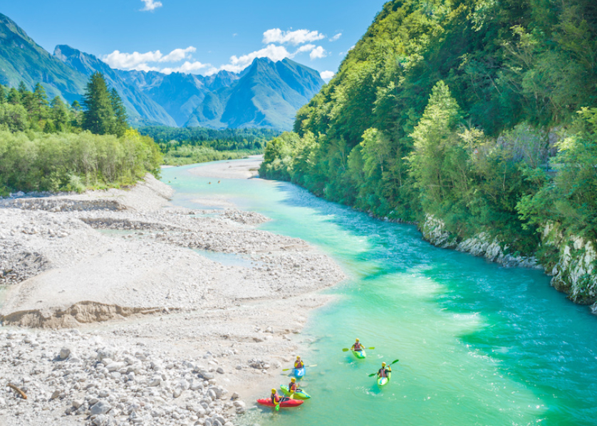 Rafting sur la rivière Soca ou autres activités outdoor comme du canyoning ou du snorkeling en rivière.